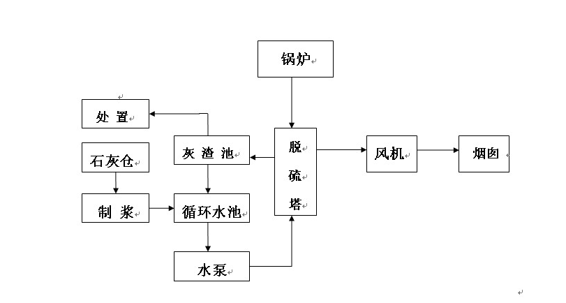 煙氣通過進(jìn)煙道進(jìn)入文丘里,在喉部的入口被水均勻的噴入,由于煙氣高速運(yùn)動(dòng),因此噴入的水被其融化成細(xì)小的水霧濕煙氣中的灰料,這樣,灰料與水滴就發(fā)生了碰撞凝聚,尤其是料徑細(xì)小的灰塵料可以被水霧水溶。達(dá)到一次除塵和脫硫這些為灰料的分離做好充分的準(zhǔn)備,此后進(jìn)入筒體,迅速降低溫度的煙氣繼續(xù)沖擊池內(nèi)的石灰水,煙氣中的粉塵和SO2與池中的石灰水反應(yīng)生成硫酸鹽,在慣性力、重力、附著力、凝聚力的作用下沉入水底完成第二次脫硫過程,被煙氣激起的水花,水霧與洗滌后的煙氣在風(fēng)機(jī)引力下,氣水同時(shí)抬開,使煙氣與石灰水充分反應(yīng),然后經(jīng)葉輪脫水器進(jìn)行氣水分離,水經(jīng)泄水管流進(jìn)水池,并使煙氣完成第三次除塵與脫硫,凈化后的氣體經(jīng)過風(fēng)機(jī)排入大氣。