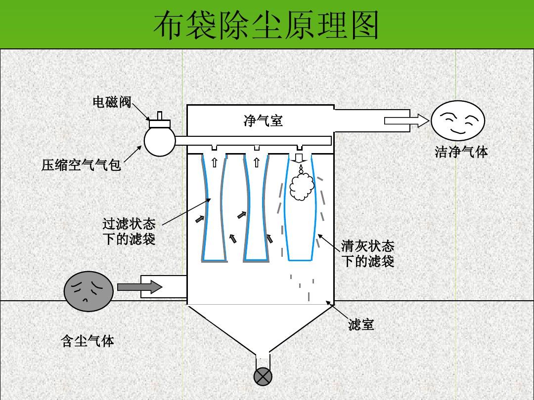 布袋除塵器灰輸送系統(tǒng)設(shè)計含塵氣體通過灰斗(或下部開口法蘭)進入過濾室,較粗顆粒直接落入灰斗或灰倉中。塵埃氣體被濾袋過濾,塵埃保留在濾袋的表面。潔凈空氣室、通過風(fēng)扇排放到大氣中。當(dāng)濾袋表面的灰塵增加,導(dǎo)致設(shè)備電阻上升到設(shè)定值時,時間繼電器(或差壓控制器)輸出信號,程控儀開始工作,脈沖閥逐個打開。壓縮空氣通過噴口噴射到濾袋,使濾袋突然膨脹。在反向氣流的作用下,附著在濾袋表面的灰塵很快與濾袋分離并落入灰斗(或灰倉),灰塵排出灰塵。閥門放電,全部為濾袋清洗結(jié)束后,集塵器恢復(fù)正常運行。